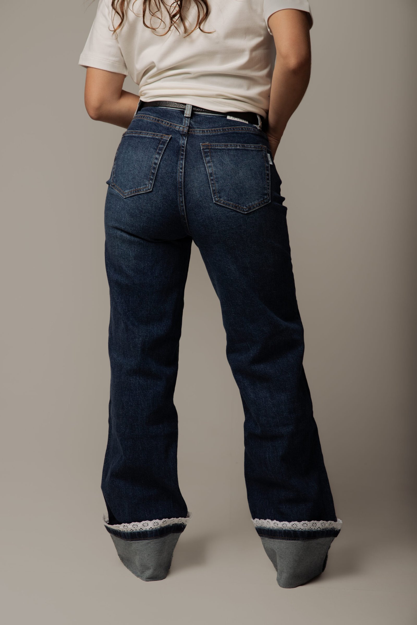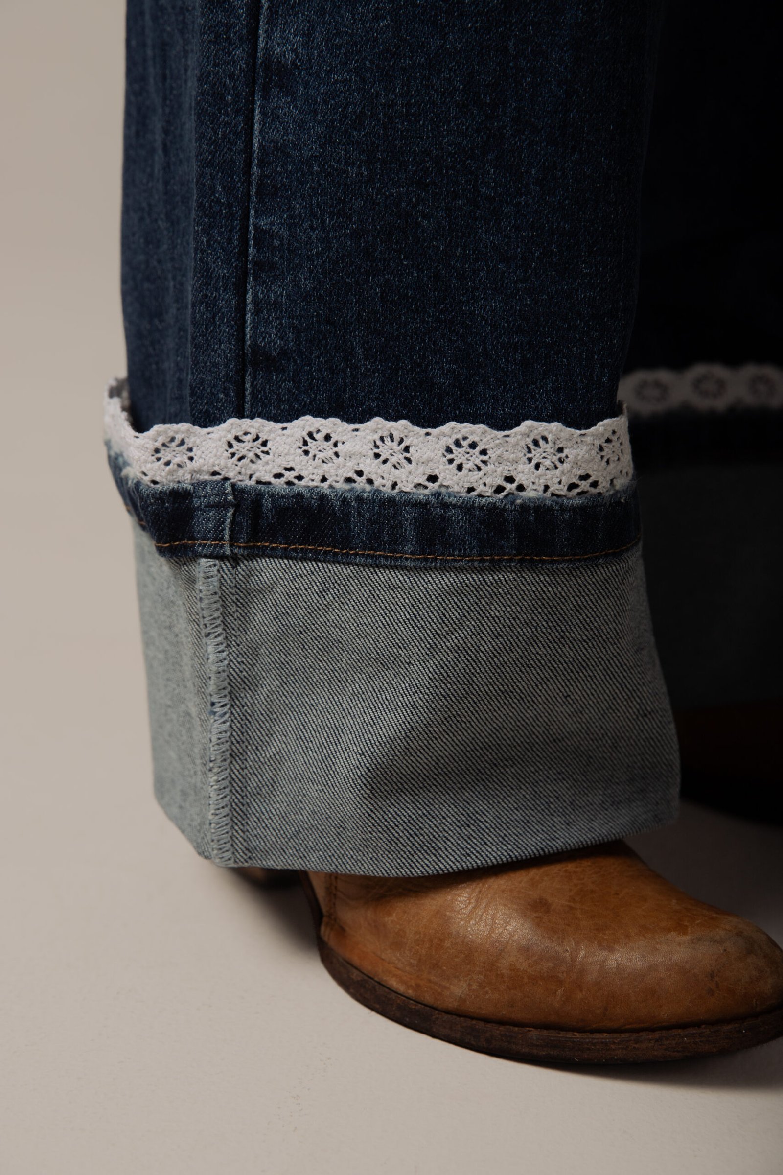 Jeans de Mezclilla para Dama Corte Amplio con Detalle de Encaje